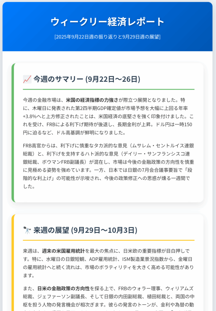 [2025年9月22日週の振り返りと9月29日週の展望]