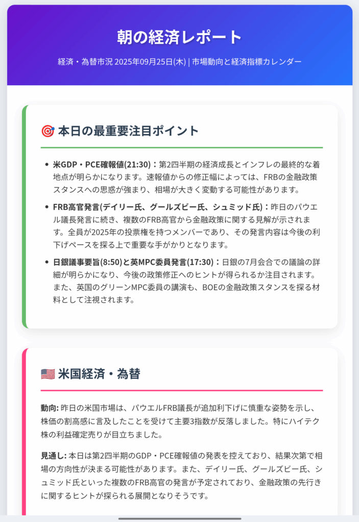 経済・為替市況 2025年09月25日(木) | 市場動向と経済指標カレンダー
