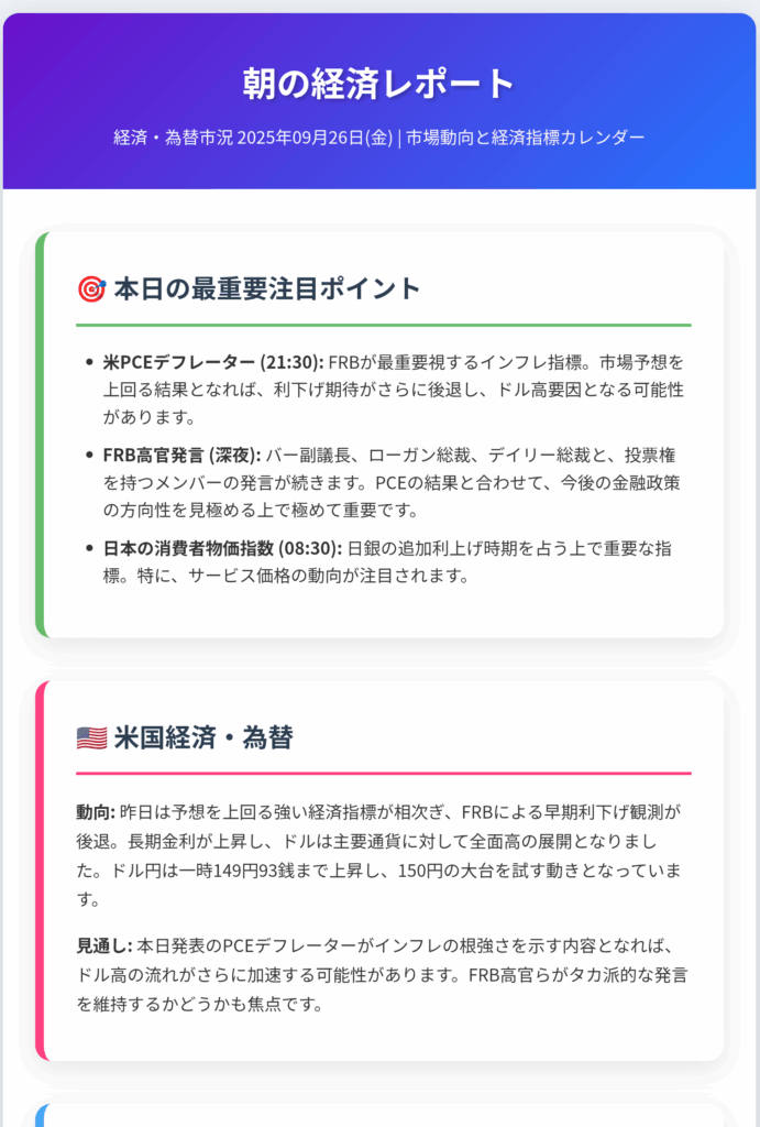 経済・為替市況 2025年09月26日(金) | 市場動向と経済指標カレンダー