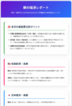 見通し: 連休中の消費動向が、今後の中国経済の回復ペースを占う上で重要となります。連休明けの市場の反応が注目されます。
