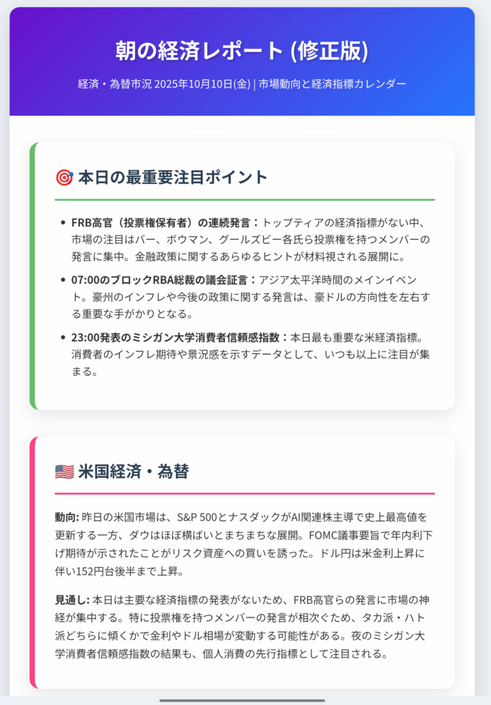 経済・為替市況 2025年10月10日(金) | 市場動向と経済指標カレンダー