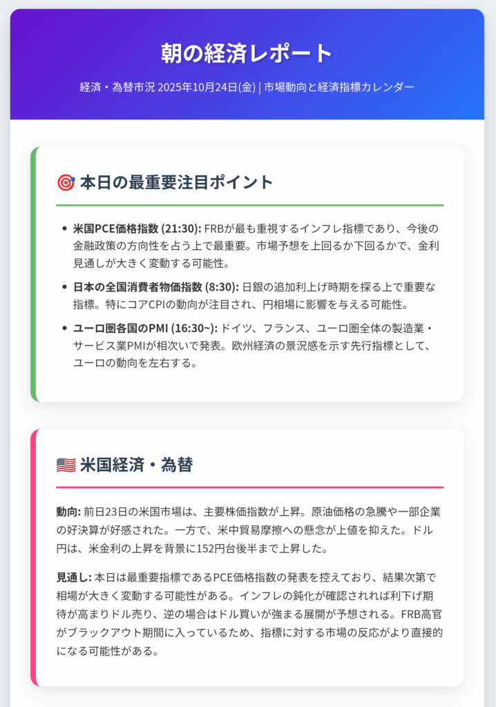 経済・為替市況 2025年10月24日(金) | 市場動向と経済指標カレンダー