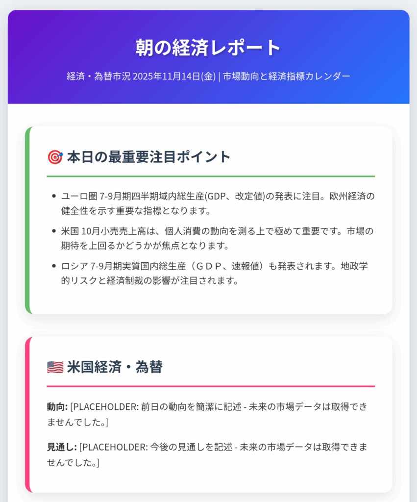 経済・為替市況 2025年11月14日(金) | 市場動向と経済指標カレンダー
