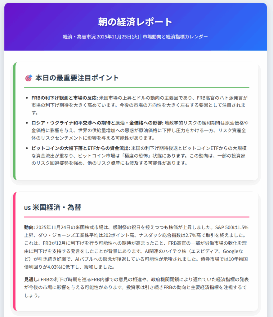 経済・為替市況 2025年11月26日(水) | 市場動向と経済指標カレンダー