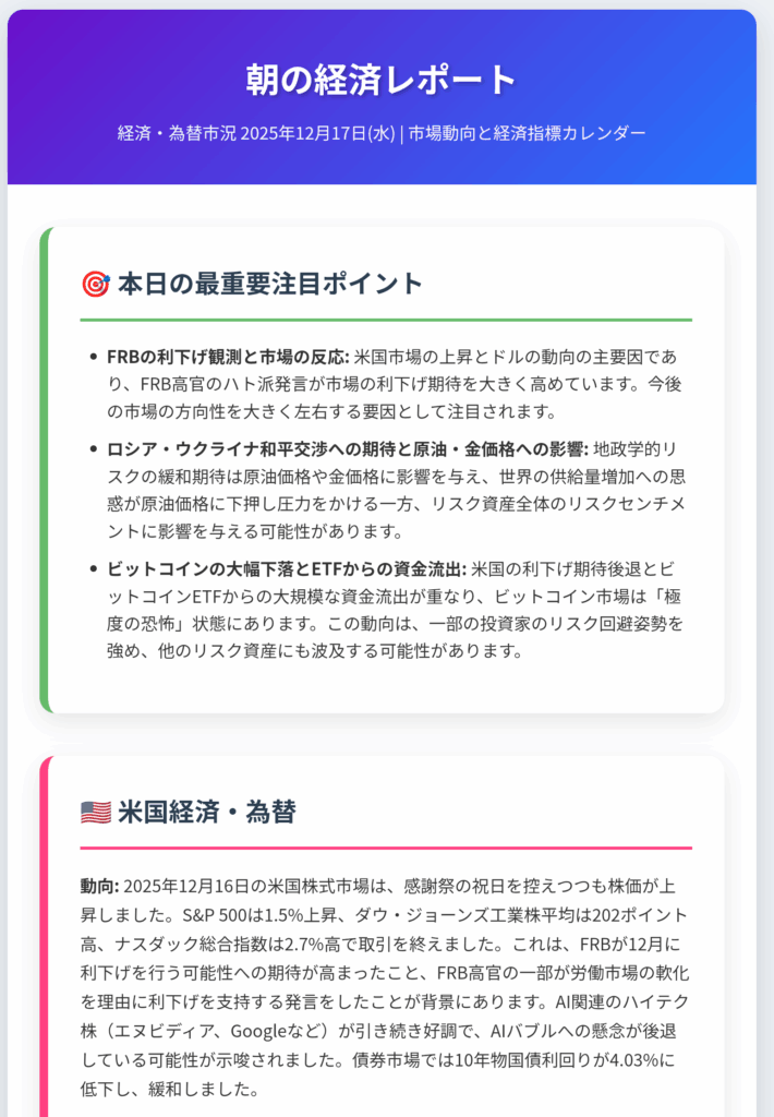 経済・為替市況 2025年12月17日(水) | 市場動向と経済指標カレンダー