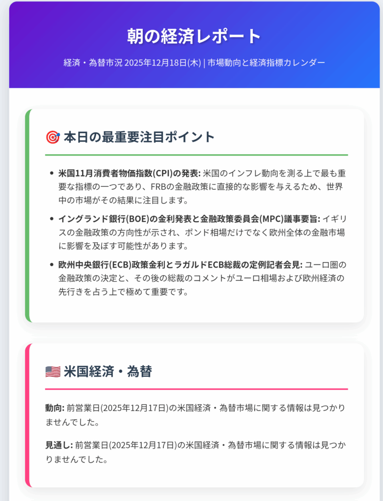 経済・為替市況 2025年12月18日(木) | 市場動向と経済指標カレンダー