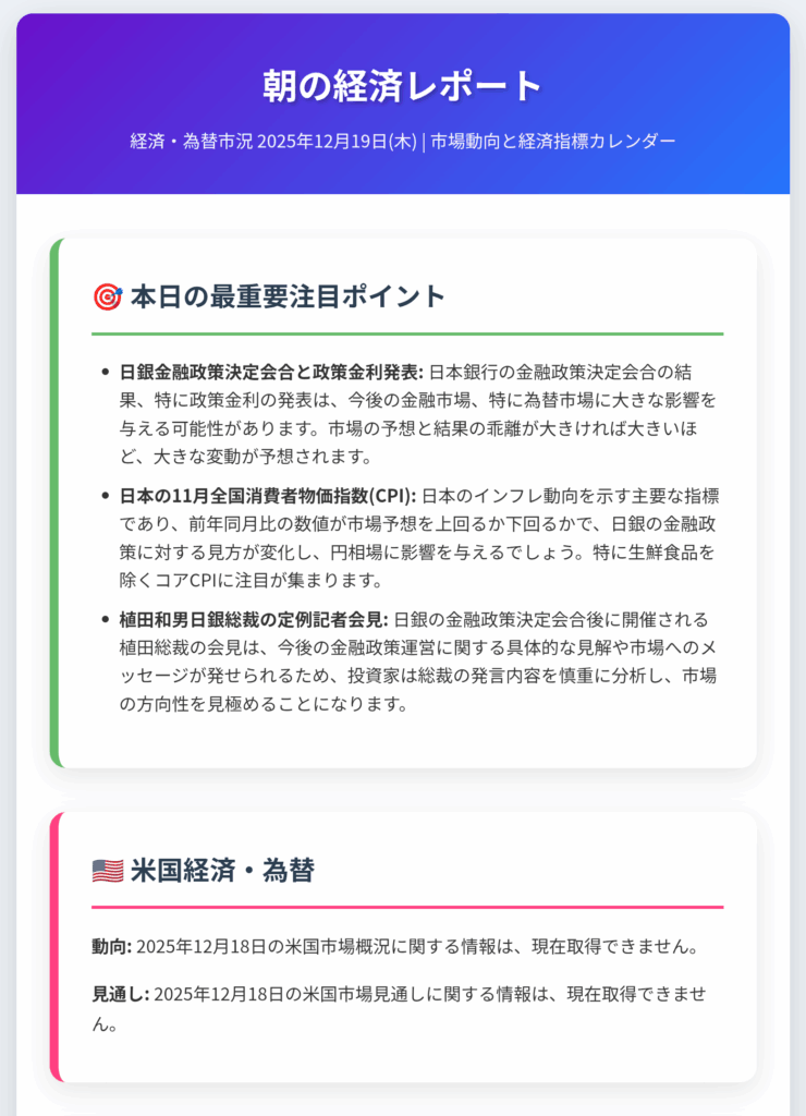 経済・為替市況 2025年12月19日(木) | 市場動向と経済指標カレンダー