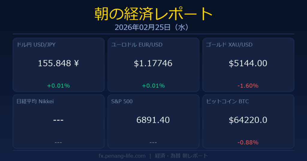 経済・為替市況 2026年02月25日(水) | 市場動向と経済指標カレンダー