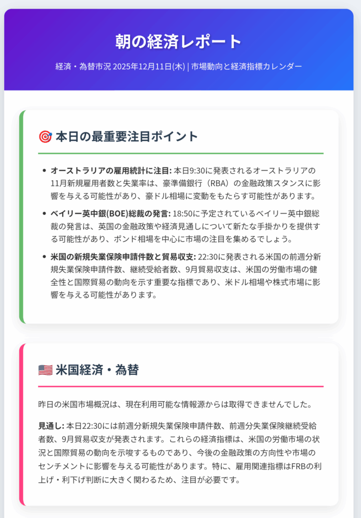 経済・為替市況 2025年12月11日(木) | 市場動向と経済指標カレンダー